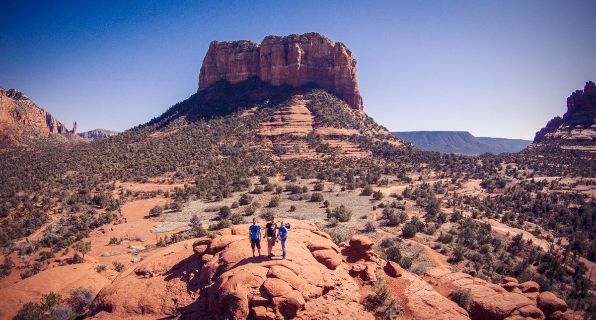 Nachdem wir Montag morgen dann einen Sportografen leider schon wieder am Flughafen abgesetzt haben heisst es für den Rest von uns: Ende der Arbeit – Anfang vom Urlaub! Wir machen uns auf den Weg Richtung Grand Canyon National Park und fahren von Phoenix aus die Interstate 17 Richtung Flagstaff. Nach Rimrock biegen wir links ab auf den Red Rock Scenic Bywy; ein sehr zu empfehlender Umweg: der Namensgebende Red Rock ist super schön und durch den Anstieg auf den kleinen Bell Rock hat man eine wahnsinnns Aussicht! Nach ausgiebiger Fotopause geht es weiter über Sedona nach Flagstaff. Die ganzen tollen Eindrücke haben ein großes Loch im Bauch hinterlassen und so Stärken wir uns bei Satchmo’s, auf der 2320 N 4th St, Flagstaff. Fazit: tolles Essen und ein gute Auswahl an lokalen Craft-Bieren. Geheim-Tipp: Coffe-Vanilla Stout!