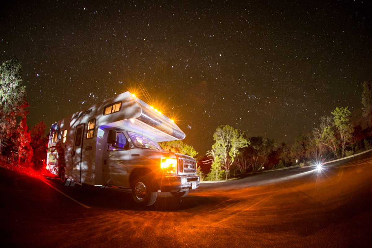 Von Flagstaff aus fahren wir weiter über die 180 zum Grand Canyon National Park Village. Normalerweise hätten wir hier 25 $ Parkfee für 1 Fahrzeug zahlen müssen, da aber Presidents Day ist, dürfen wir umsonst einfahren. Noch ein kleiner Nachtspaziergang zum Canyon und zwei Langzeitbelichtungen später liegen wir auch schon in unseren Schlafsäcken und freuen uns auf einen tollen Sonnenaufgang über dem Grand Canyon!
