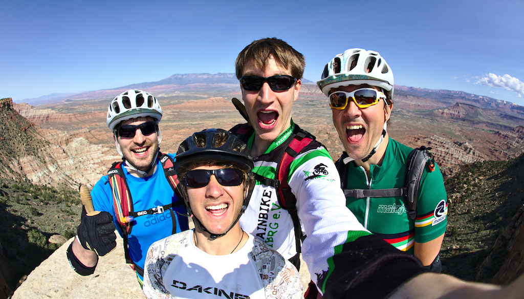 It’s hard to explain the experience we had on that day. The trails made some of us do things we can’t imagine in Europe, like climbing steep uphill parts without losing grip or going down on very technical single trails. The scenery was breathtaking like this very steep cliff which goes along the ridge before it enters a nice and flowy single trail section in the end. This must be the feeling the guys from Rampage experience before dropping in. With so much sun and without dirt or mud on the trail it still seemed unreal for us to bike in the desert. We took several stops to grab our camera gear and shoot some stunning images, but on some parts we just had to ride the trails without stopping simply because it’s soo much fun!