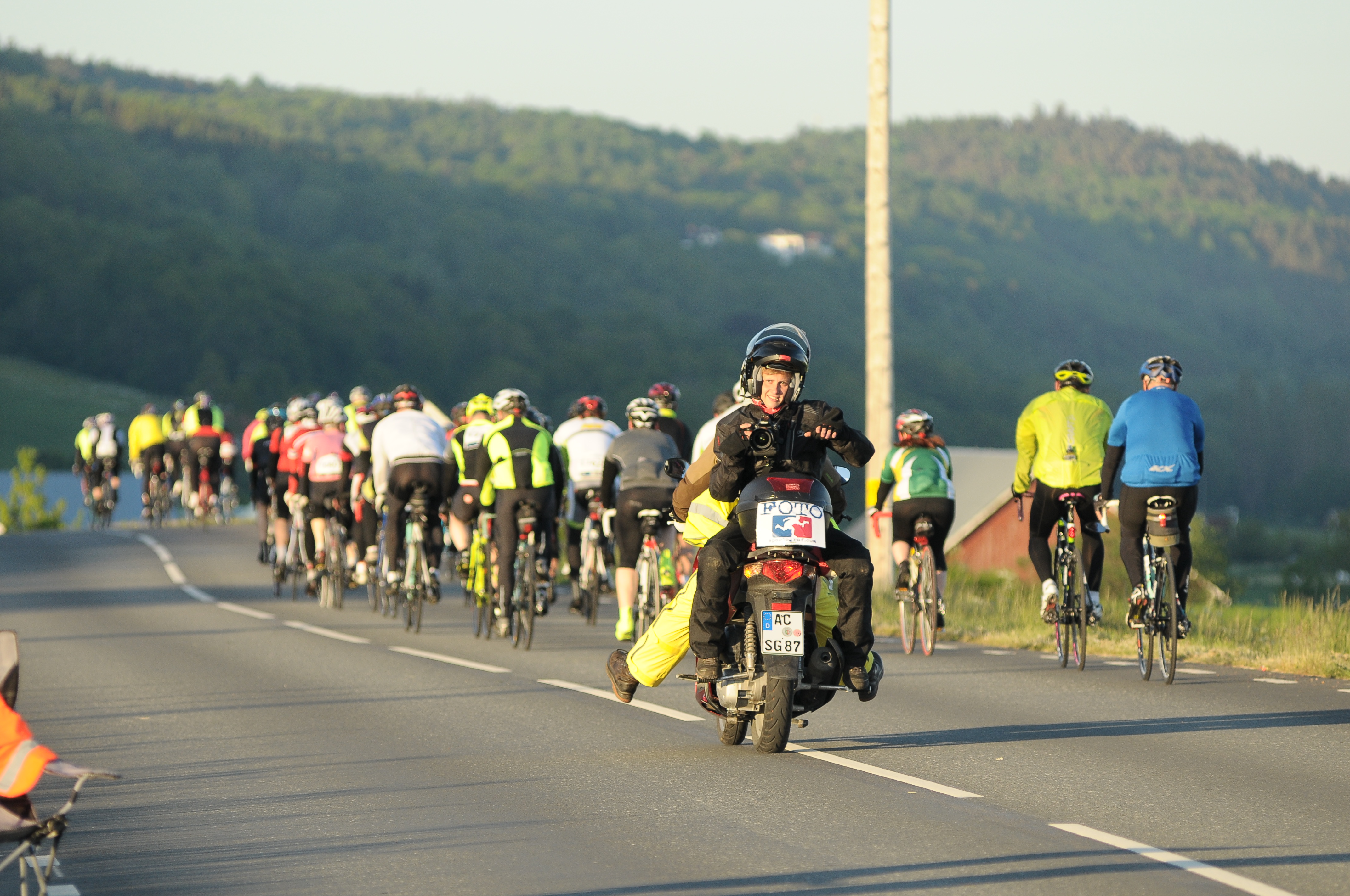One team covered start and finish with a little help from some others to allow for 2 or 3 hours of rest at night time, three other teams each covered 2 different spots each and 2 motorcycles allowed for some awesome mid-race Tour de France-style pictures with a photographer taking pictures sitting backwards. They made loops in the evening until it got dark, started for the entire 300 km tour as soon as the light allowed for it in the morning and did loops again the next afternoon.