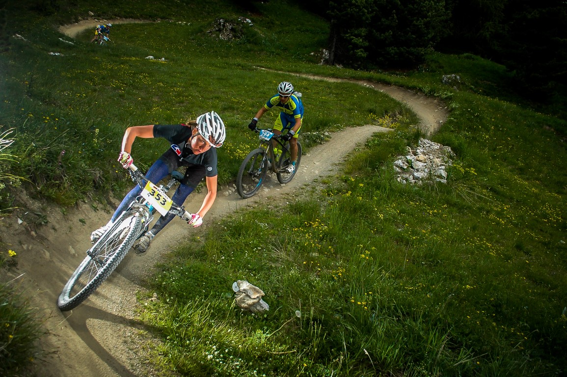 Vom 1. – 3. Juli wurden genau jene Erwartungen erfüllt. Bereits die Auftaktetappe mit einem 10km langen Bergzeitfahren von St. Moritz zur Bergstation Corviglia auf ca. 2500m Höhe stimmte mit seinem faszinierenden Panorama bei strahlendem Sonnenschein auf zwei weitere verheißungsvolle Tage ein. Als Belohnung für die Strapazen bergauf machte der erste der zahlreichen Flow-Trails in diesem Gebiet Laune auf mehr und mit einem breiten Grinsen im Gesicht ging es zurück ins Tal.
