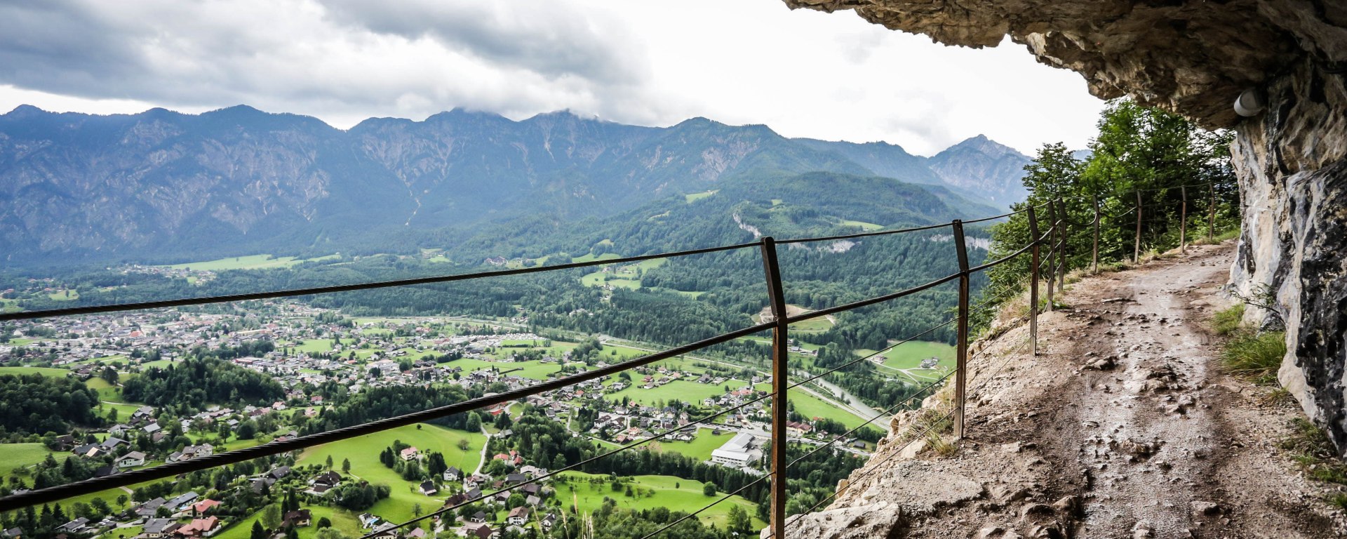 Zum Glück ist diese Passage nicht allzu lang und der Ochsentod spuckt einem bald wieder auf einer Forststraße aus. Die nächste markante Stelle der Strecke folgt bald darauf – die Durchfahrt durch die ewige Wand. Auf der Extremdistanz kann der Ausblick von dort oben gleich zweimal genossen werden. Bad Goisern verschwindet hinter Nebelfetzen die durch den anhaltenden Regen ziehen.