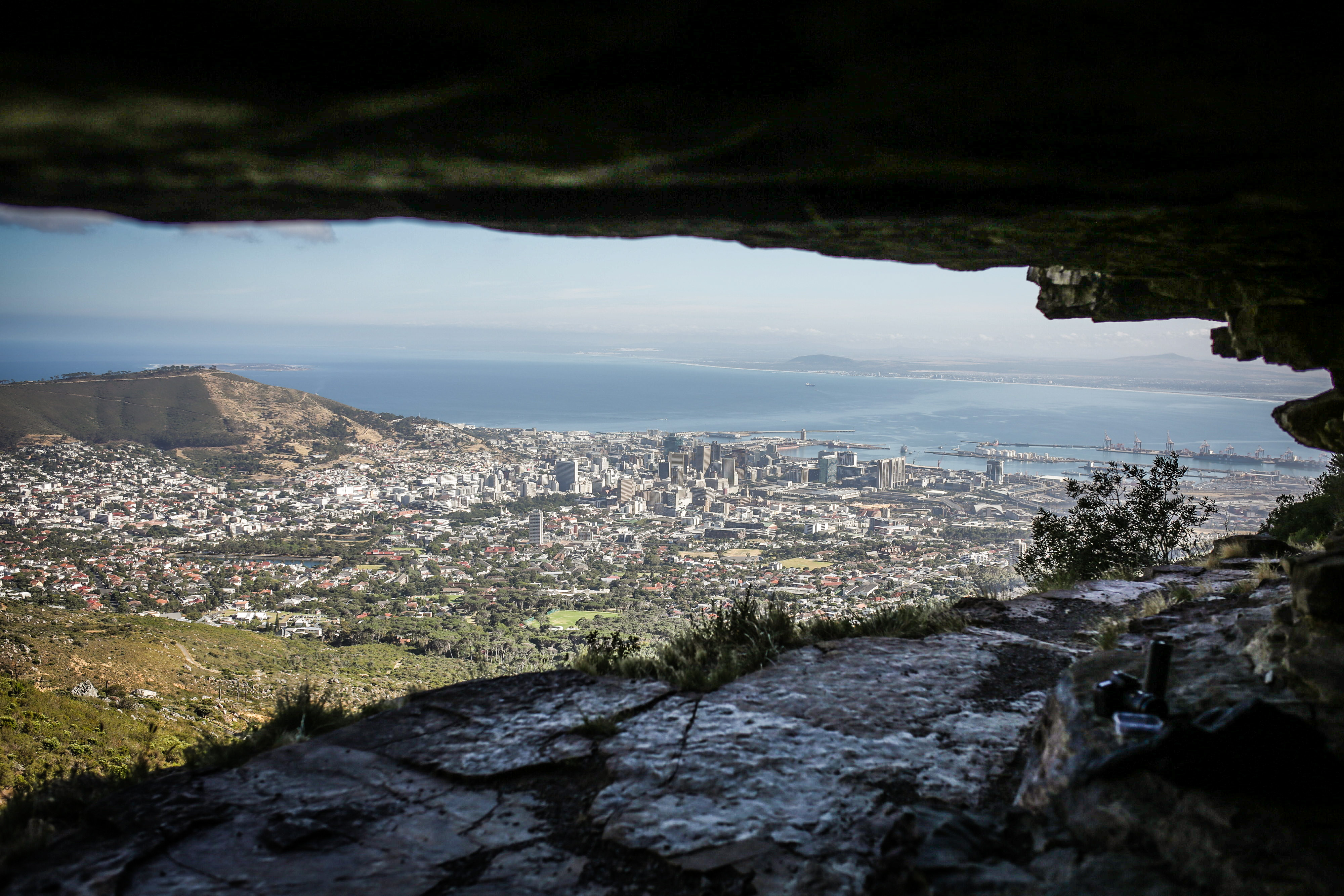 The 35km route does not allow much for a warm up as the first 4km are pretty much the steepest of the day. Up Kloof Nek, along the contour and then up Platteklip on the face of Table Mountain. Here the joy and energy amongst the runners was contagious and remarkable. The morning had greeted us with a cold mist hovering above the table which was much welcomed as the sweat still poured down my temples. The climb is tough but the view is worth it and my legs felt strong and ready as we picked up the pace across the table. Every now and then the cloud would clear giving an incredible view of the city waking up beneath us.