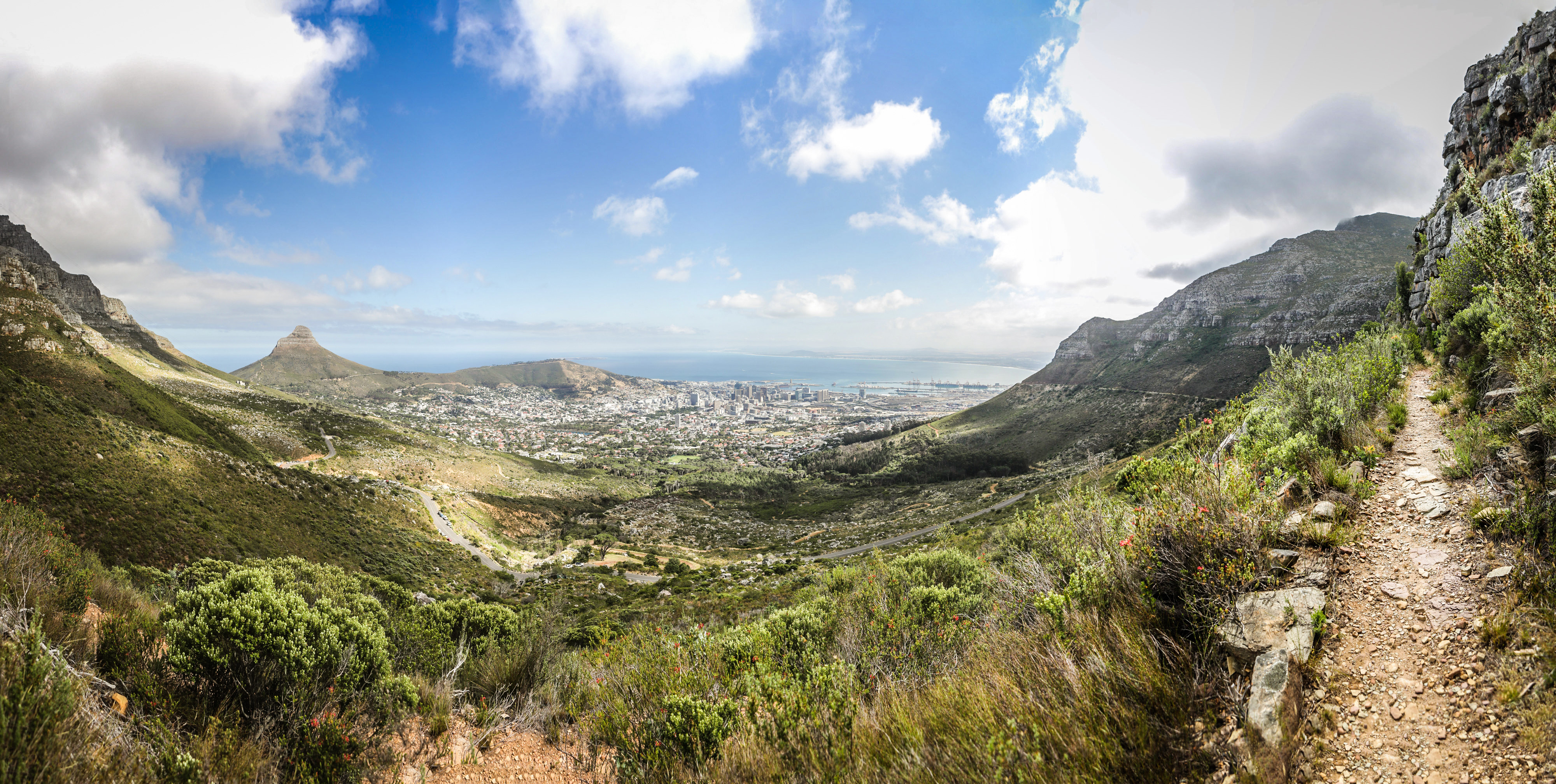 I knew from here it was down and home and could hear and begin to start seeing the start with about 7km to go. Despite the pain, the jelly like feeling of my legs and the heat, I so loved this section. To the left you look back up Platteklip and how you conquered it that morning and to the right the city of Cape Town buzzes as if cheering for you.