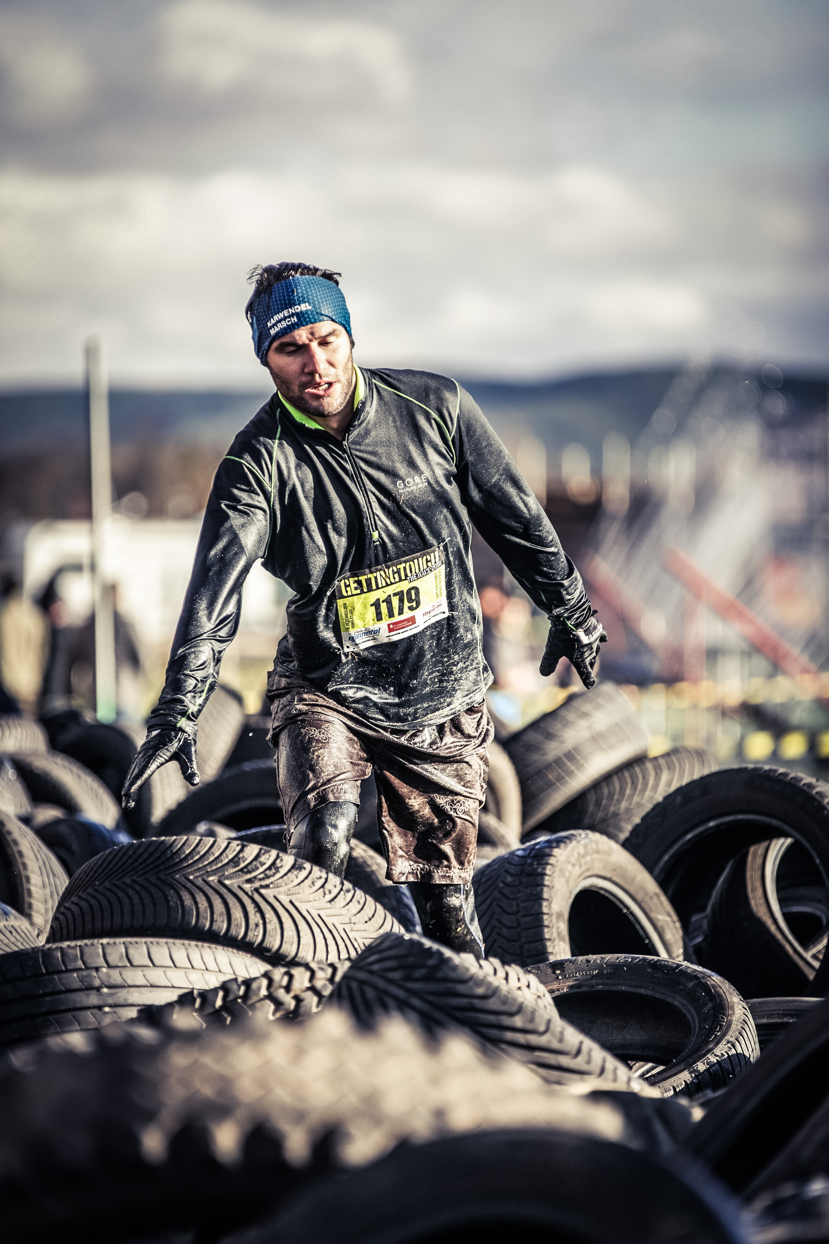 Nach dem Start gingen alle Fotografen an ihre zuvor festgelegten Hindernisse. Bereits nach rund 90 Minuten kam der Erste vorbei. Doch halt, Moment! In diesem Jahr lieferten sich gleich zwei Top-Athleten ein Kopf an Kopf-Duell kurz vor der Ziellinie. Und nach dem Siegertreppchen in den zurückliegenden vier Jahren hieß der Gewinner diesmal nicht Hagen Brosius alias Luigi. Kurz nach der Mittagszeit stiegen die Temperaturen ein wenig an. Ich hatte mich am Morgen ein bisschen zu warm angezogen. Ich schwitzte an Stellen, wo ich nicht mal wusste, dass man dort schwitzen kann – während die Teilnehmer in ihren kurzen Outfits nur so vor sich her zitterten. Andere Fotografen hatten ebenfalls mit der Kälte zu kämpfen. Aber jeder Teilnehmer wusste im Vorfeld, worauf er sich beim wohl härtesten Hindernislauf Europas einlässt. Unzählige Läufer hatten mit Krämpfen und Unterkühlung zu kämpfen, die fleißigen Helfer vom Rettungsdienst waren im Dauereinsatz. Im Ziel bekam jeder Finisher sofort eine Rettungsdecke gereicht. Viele Teilnehmer gaben bereits einige Kilometer vor der Ziellinie auf. Anders als bei anderen Hindernisläufen, bei denen die Läufer vor der Kamera posieren oder nett lächeln, liefen viele an den Fotografen vorbei, ohne ihnen nur einen Blick zu würdigen. Alle waren viel zu sehr mit der Kälte und sich selbst beschäftigt.