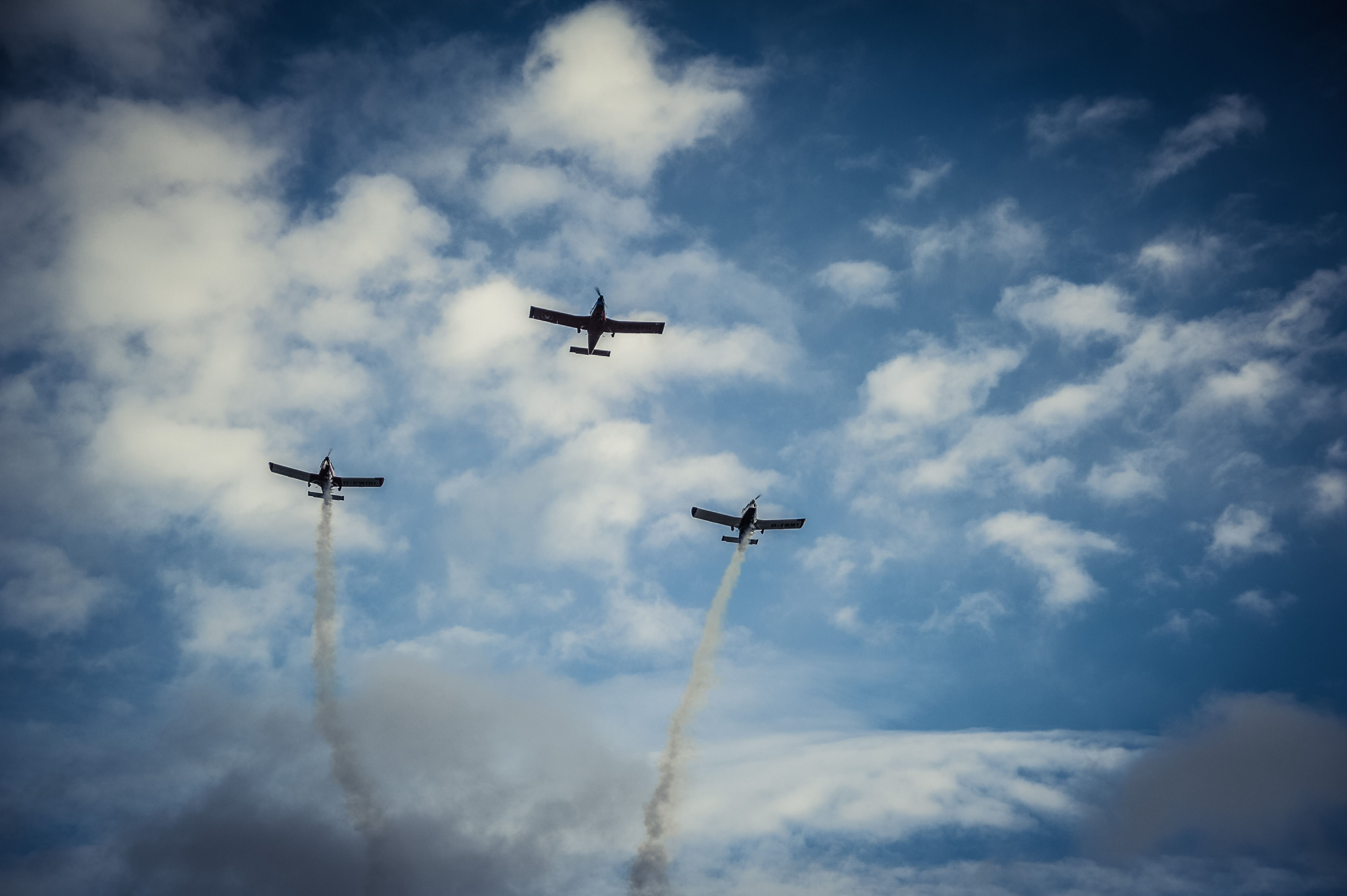 Vor Ort angekommen, traf ich auf 14 weitere Fotografen. Nach einer kurzen Einweisung und Absprache mit dem Veranstalter legten wir endlich los. Zunächst mussten wir erst einmal das Herotent aufbauen, allerdings hielt es den Windböen nicht stand. Doch die freundlichen Helfer des Technischen Hilfswerkes halfen uns mit Sandsäcken aus, sodass wir alles sicher befestigen konnten. Danach war eine kleine Wanderung angesagt: 15 Minuten in Richtung Starterfeld, schwer bepackt mit unseren Kamerarucksäcken. Um 10:30 Uhr erfolgte schließlich endlich der lang ersehnte Massenstart, bei traumhaft sonnigem Wetter und milden Temperaturen für diese Jahreszeit. Der Countdown wurde mit drei Kunstflugzeugen eingeleitet, die über die Teilnehmer hinweg flogen, sodass es mir schon beim Anschauen schwindlig wurde. Die Kameraden der Feuerwehr kannten ebenfalls kein Erbarmen und zielten auf die Starter mit einer Wasserkanone. Diejenigen, die trocken blieben, durfte sich wenige Meter danach im Wassergraben endlich abkühlen, damit gar nichts erst die Chance bestehen würde, dass sie während der nächsten Stunden ins Schwitzen kommen könnten.