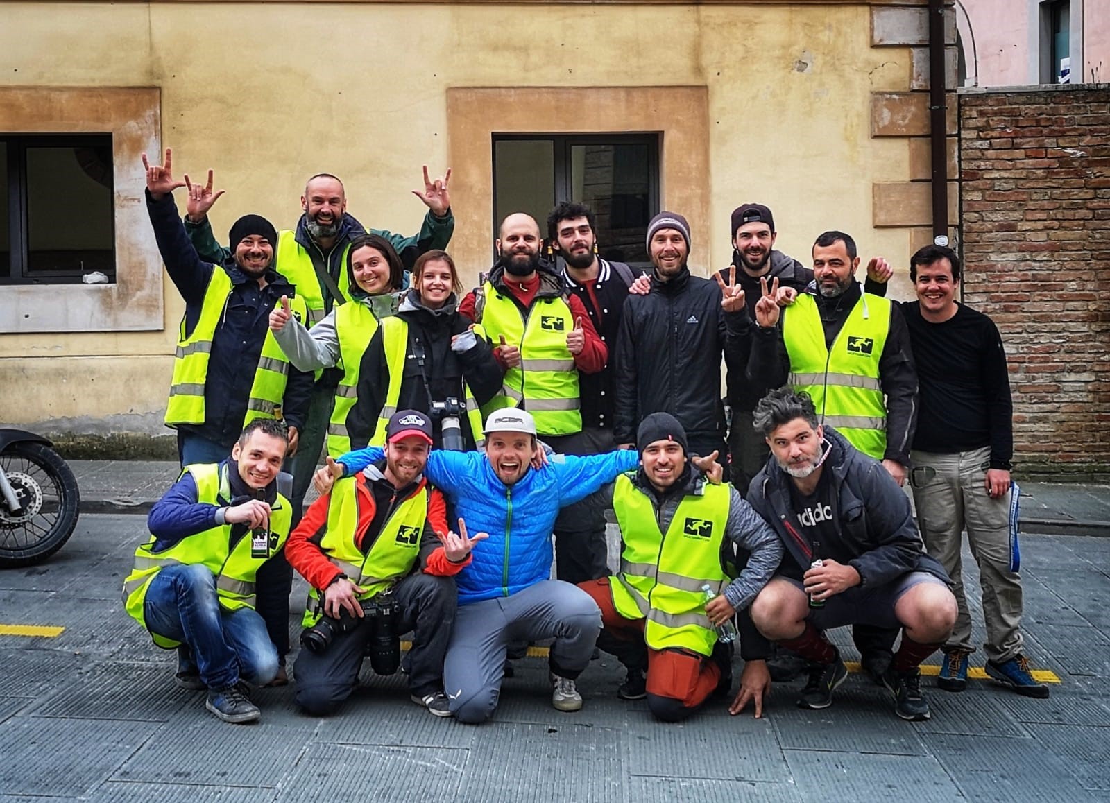 Il sapore di questa gara è particolare. Unico. Svegliarsi la mattina all’alba per muoversi verso gli spot ti regala momenti magici. Ancora insonnoliti scendiamo dagli alloggi e ci fermiamo a bocca aperta ad ammirare il sole che dirada la nebbia dai cipressi e dai colli della campagna senese. La rugiada ricopre i van, le macchine e le moto, e qualche merlo già preannuncia la primavera. La giornata si prospetta tiepida e ci scattiamo qualche foto con i cellulari anche se dobbiamo muoverci perché comunque ci divideremo per andare chi allo start, chi agli spot. Si fanno gli ultimi controlli, si carica tutta l’attrezzatura e si parte.