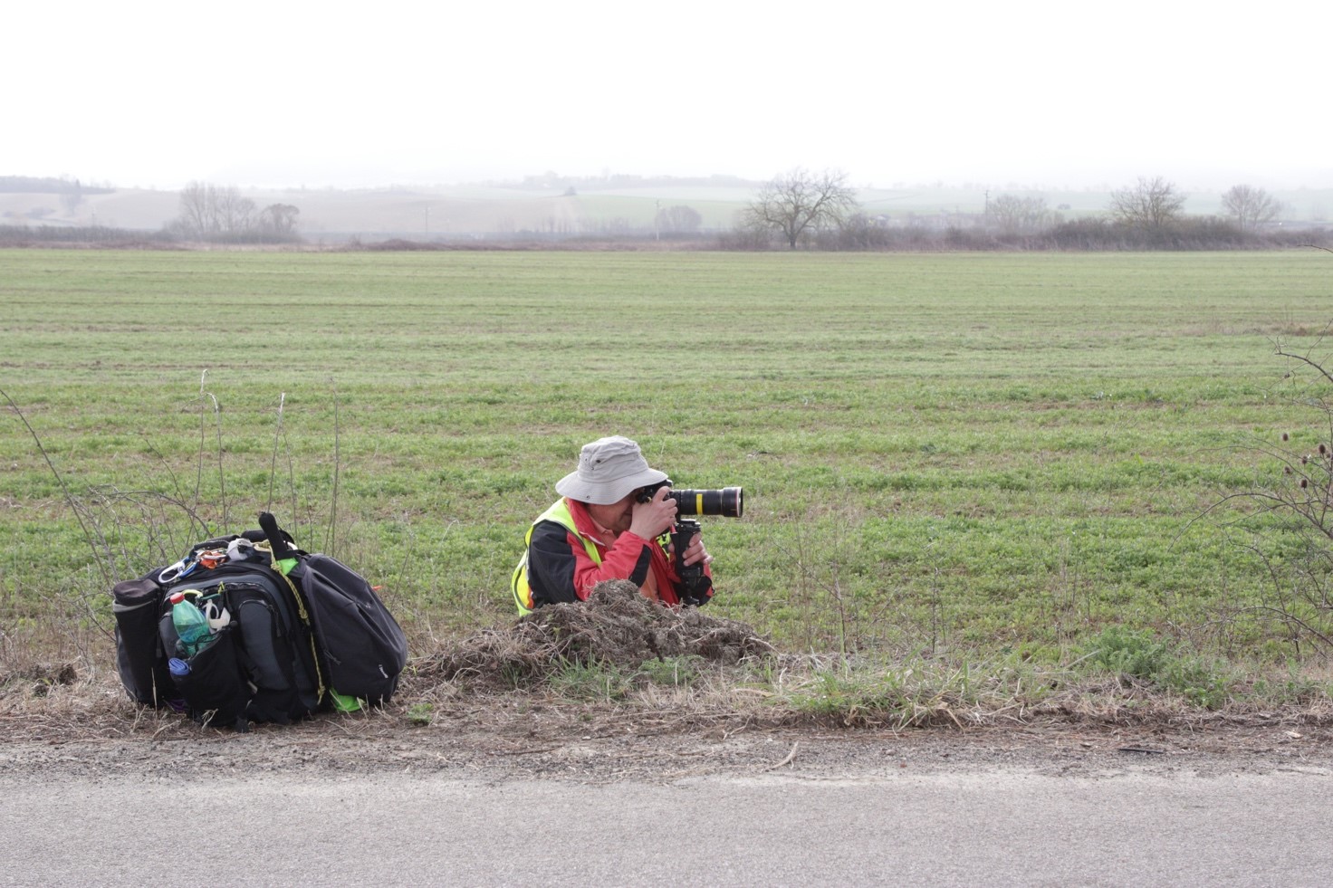 Incomincio a settare tutta la strumentazione: imposto la fotocellula cercando un punto sicuro ma studiando un’inquadratura adatta. Scelgo un’ottica grandangolare, dal basso verso l’alto, così da dare risalto ai corridori. Cerco qualcosa per camuffarla, rami e foglie di alberi tagliati a bordo strada. Imposto il fuoco e faccio diversi test, con la complicità di un collega.
