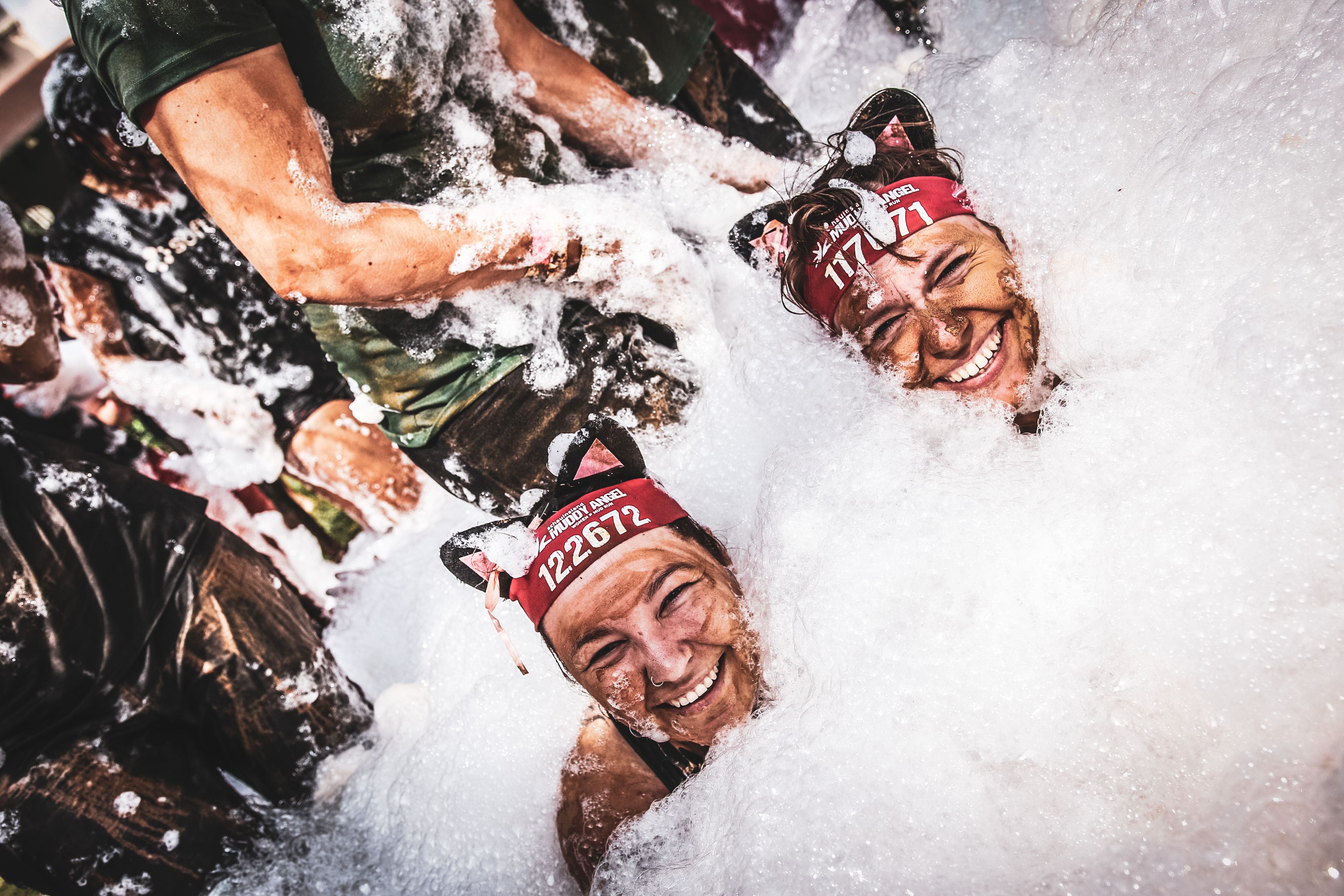Dann waren wir da, Parkplatz war schnell gefunden, ab zur Anmeldung und auch das war schnell erledigt, noch unsere Rucksäcke abgegeben und dann hieß es warten. Der erste Startblock ging los, jetzt hieß es anstellen für den 10:20 Uhr Startblock, das war unserer. Wir waren so aufgeregt und nach dem Warm Up schon mal durchgeschwitzt. Wir haben uns vorgenommen nur zu laufen, immerhin war es kein Wettkampf wo es darum ging als erster im Ziel zu sein. Spaß stand für uns ganz oben und den hatten wir in Massen, zusammen und auch mit den anderen Teilnehmerinnen. Es ging durch die Wasserhindernisse, drüber und drunter und ab und an hat es zwischen den Zähnen geknirscht dank der Schlammpackung. 15 Hindernisse auf 5 km. Zu Beginn hatten wir echt gedacht „Oh Gott, ob wir das schaffen?“ und ich kann euch sagen, wirklich jede Frau in jedem Fitnesslevel kann das schaffen. Man ist so voller Adrenalin, schnattert hier und da und vergisst, dass man eigentlich gerade da mit macht.