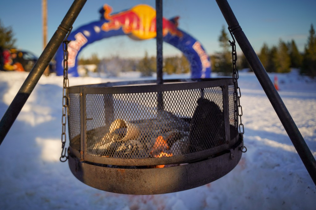Nach einem knappen Kilometer laufen finde ich den im Vorhinein mit dem Veranstalter abgesprochenen Spot an einer RedBull Station – Jackpot! Verpflegung mit Energy in unbegrenzter Menge. Auch heute baue ich meine Lichtschranke auf und bereite mich weiter auf die ersten Teilnehmer vor. Um mich drum herum mehreren sich zunehmend die norwegischen Zuschauermassen. Im Gegensatz zu herkömmlichen Events stehen diese nicht einfach nur am Rande der Strecke. Viele von ihnen graben sich mit Schaufeln Bänke in die Schneemassen und bringen eigene Grills mit. Gegen 9.45 Uhr höre ich einen Helikopter, dieser begleitet und filmt die ersten Skifahrer. Als diese hinter einer Kurve auftauchen, schreien hunderte Menschen um mich herum „Heia! Heia! Heia!“. Diese Rufe begleiten mich den gesamten Tag hinweg, bis zur letzten Teilnehmerin. Anfangs kommen die Skifahrer noch in relativ gebündelten Gruppen, diese zerstreuen sich aber innerhalb der nächsten Stunde zunehmend. Dann fahren diese meist nur noch einzeln den von mir abgedeckten Berg hinauf, dafür jedoch pausenlos im 10 Sekundentakt. Bereits mit den ersten Teilnehmern werden von allen umstehenden Zuschauern die Bierdosen geöffnet und Sektflaschen geköpft. Es verstreicht Stunde um Stunde und das ein oder andere witzige Gespräch mit den angeheiterten Norwegern bei ebenfalls wieder perfektem Wetter. Ab ca. 15.00 Uhr werden die Zuschauermassen wieder etwas lichter aber die Stimmung bleibt weiterhin sehr motivierend. Mit einer Gruppe von 6 Norwegern komme ich bei den länger werdenden Pausen zwischen Teilnehmern immer wieder ins Gespräch. Gegen 17.00 Uhr bekomme ich vom RedBull Veranstalter die Information, dass ab 17.30 Uhr der vor mir liegende Streckenabschnitt geschlossen wird, der Feierabend ist also in Sicht. Nachdem die letzte Teilnehmerin passiert ist, trinke ich mit den Norwegern noch ein Abschlussbier und mache mich auf den Weg zum Sammelpunkt, von wo aus wir wieder zurück in die Unterkunft fahren. Auch den dritten und letzten Abend lassen wir nach dem Abendessen gemeinsam ausklingen.